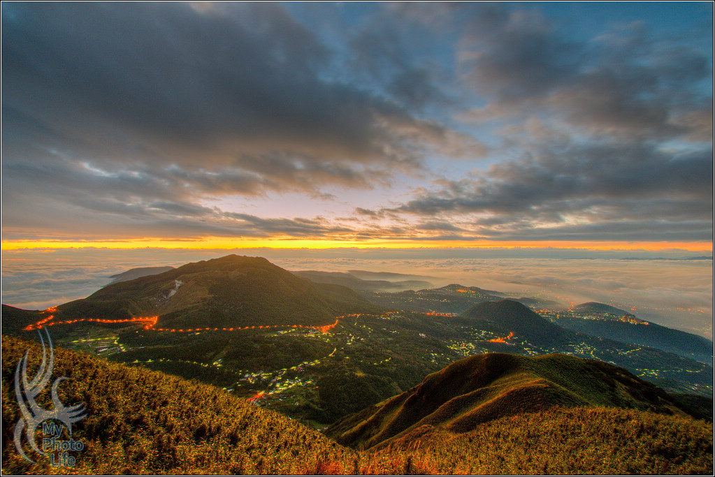 還好雨沒下很久,快天亮了就趕快準備七星山日出吧!