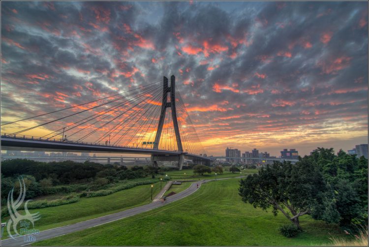 原本想在鴨鴨公園拍藍幕夜景,看說雲彩很漂亮就先來新北大橋拍日落 沒想到在年末的時候,還有不錯的晨昏景可以拍