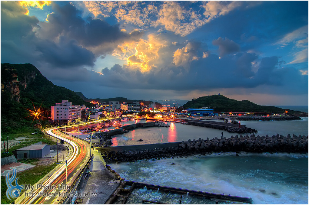2013.10.04東澳漁港.日落雲彩&車軌