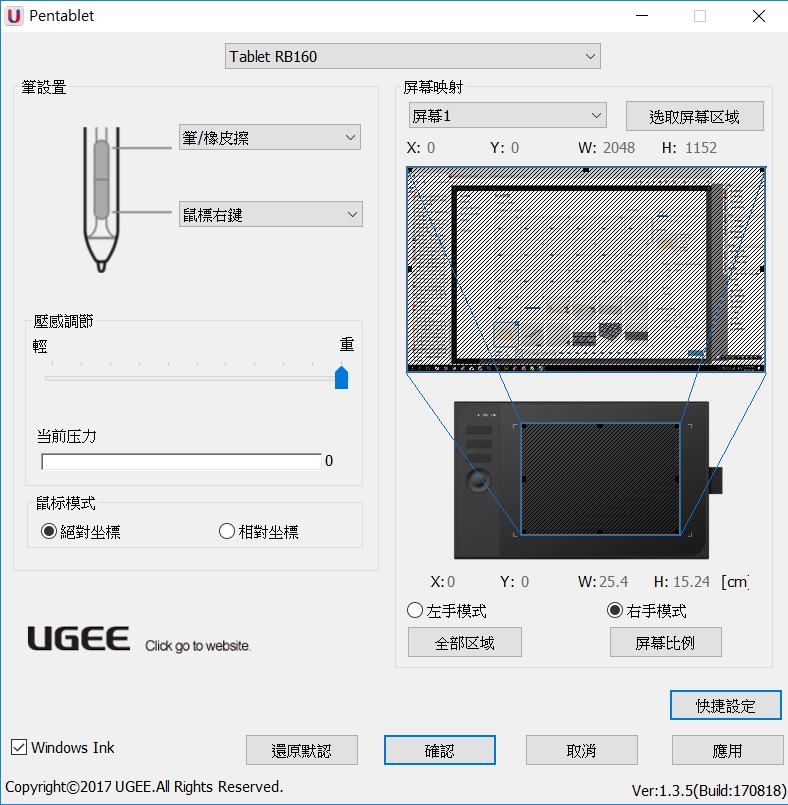 安裝驅動後的設定畫面