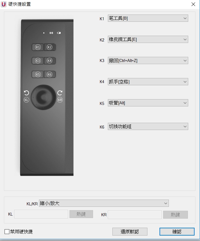 板子上面有6快捷鍵,1個控制旋盤