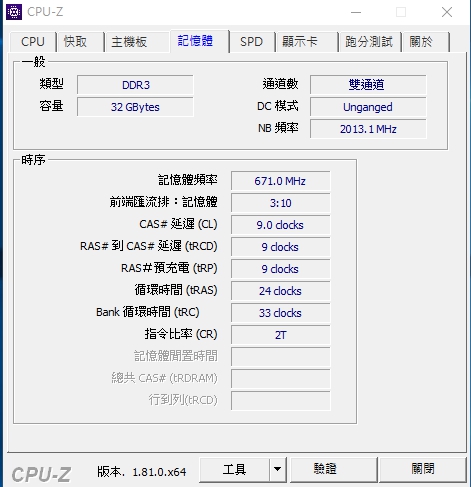 CPU-Z中記憶體 DDR3 32GB |