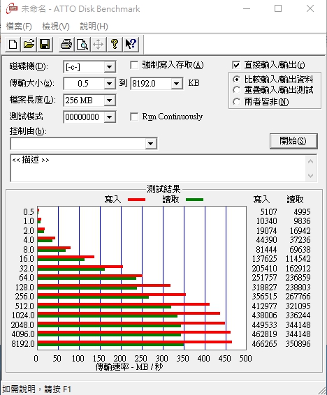 Apacer AS710 256GB SSD 讀取:350.8 MB/s 寫入:466.2 MB/s |