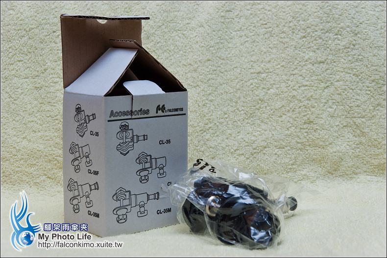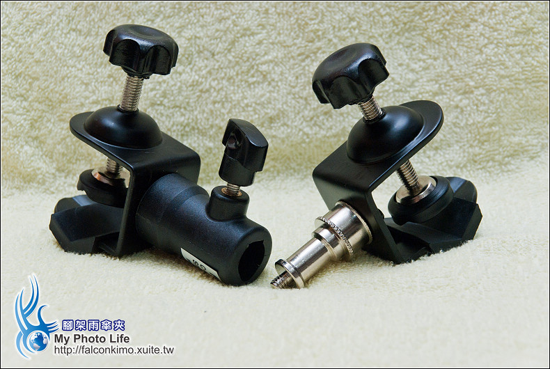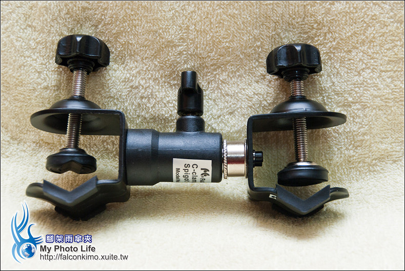 腳架雨傘夾 2011-12-232017-09-22 阿展 最近這陣子很常下雨,撐著雨傘拍攝頗麻煩 之前就興起了買腳架雨傘夾的打算 腳架雨傘夾分為 CL-35F C型夾附母座 CL-35 C型夾附公頭 先來拆CL-35F C型夾附母座 這就是CL-35F C型夾附母座 接著是CL-35 C型夾附公頭 CL-35 C型夾附公頭 CL-35 C型夾附公頭的公頭有一個塑膠帽請記得拿下 CL-35F C型夾附母座(左)、CL-35 C型夾附公頭(右) 組合之後請鎖緊中間的!左邊夾腳架中柱、右邊可以拿雨傘的傘柄,請記得風大的時候小心用! 分享此文: 分享到 X(在新視窗中開啟) X 分享到 Facebook(在新視窗中開啟) Facebook 請按讚:喜歡 正在載入...