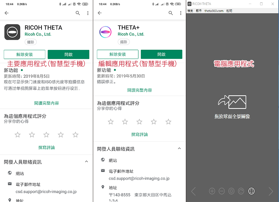 電腦應用程式RICOH THETA留在三部曲中解說