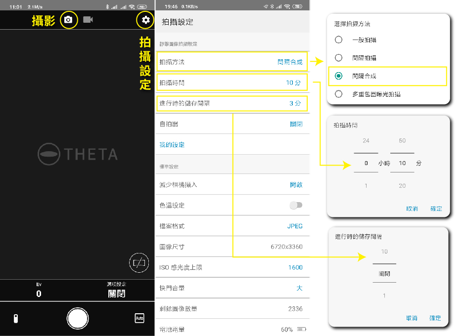 利用THETA APP間隔合成功能,THETA+ APP 定時攝影功能