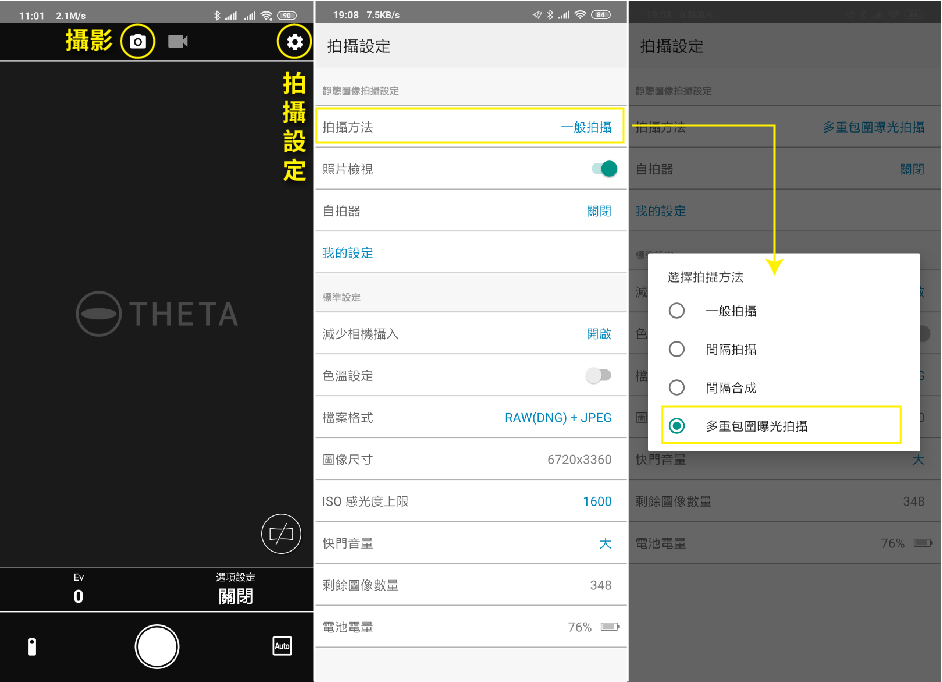 THETA相簿設定中的設定蠻重要的!