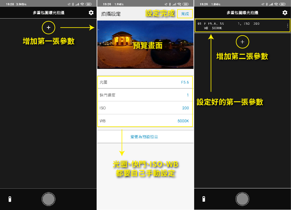 右上角齒輪圖示為拍攝設定