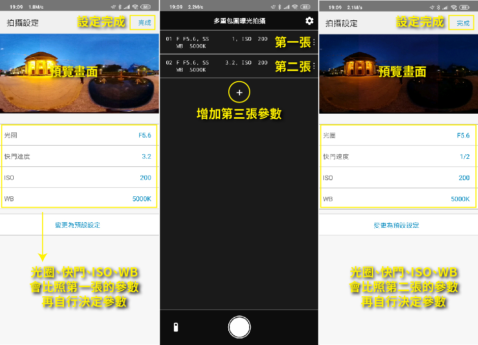 光圈優先:F2.1、F3.5、F5.6三種光圈值可以選擇