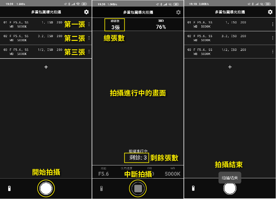 如果選擇複數照片就會變成定時拍攝模式,這部份下面會說明