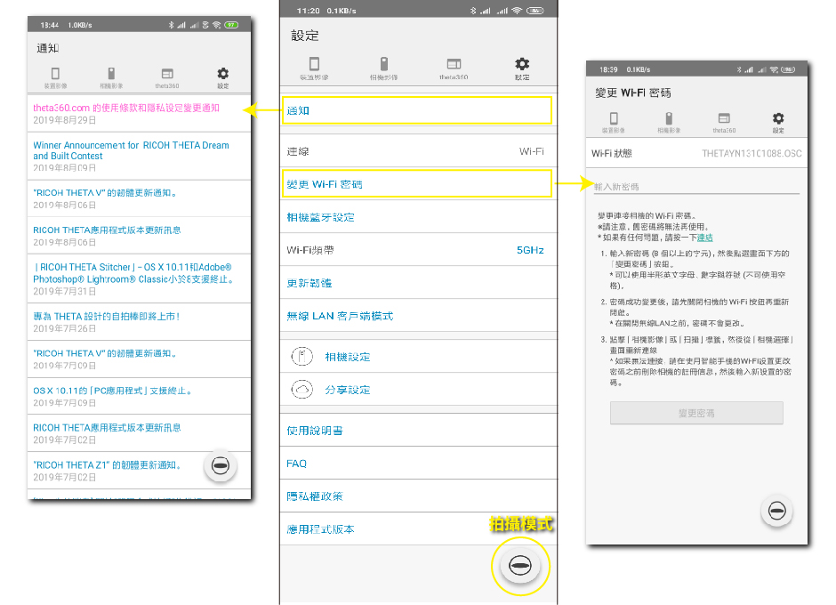 通知:THETA官方的通知訊息(需有上網)