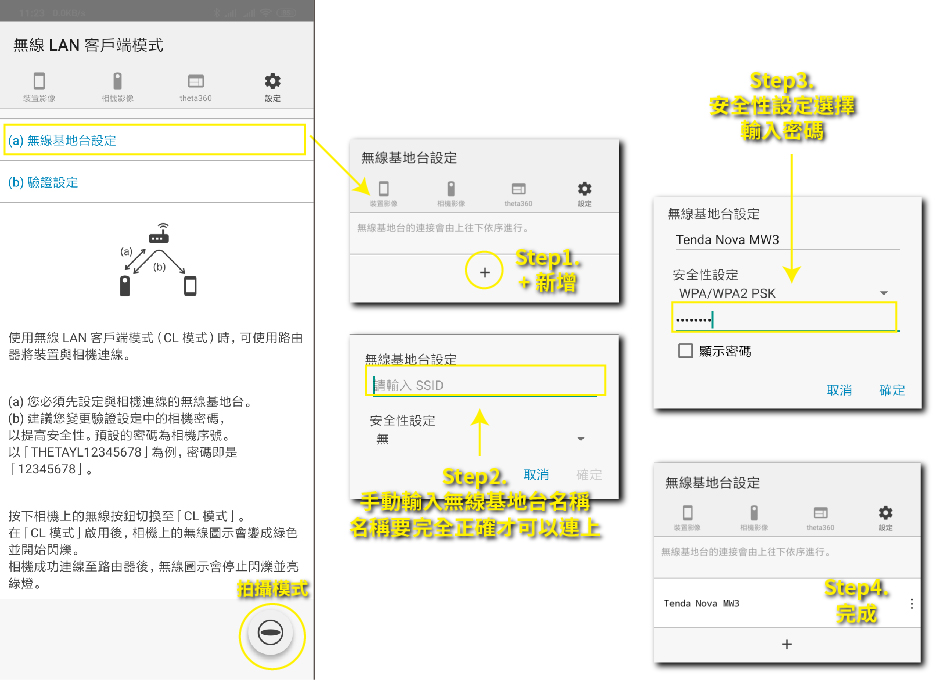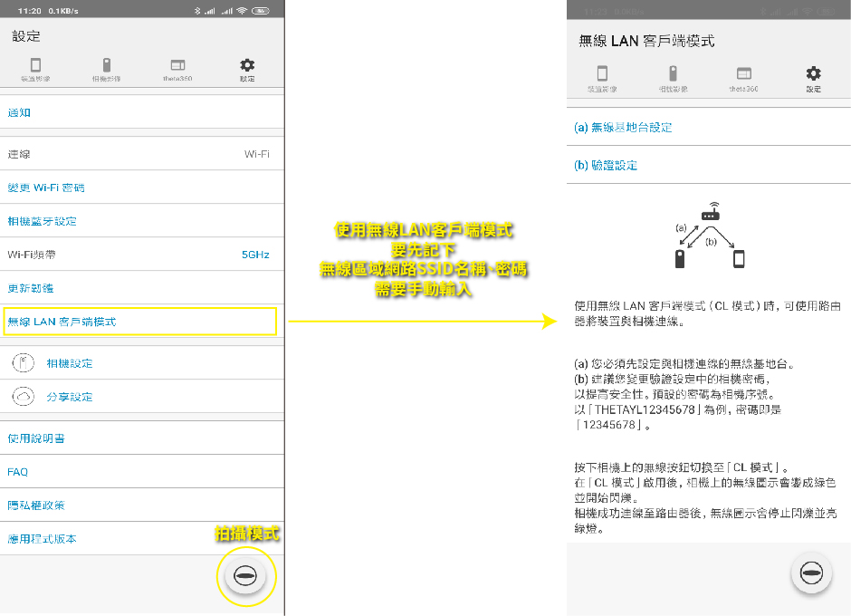 這個設定可以讓THETA Z1連上無線區域網路,手機一樣連上無線區域網路就可以控制THETA Z1