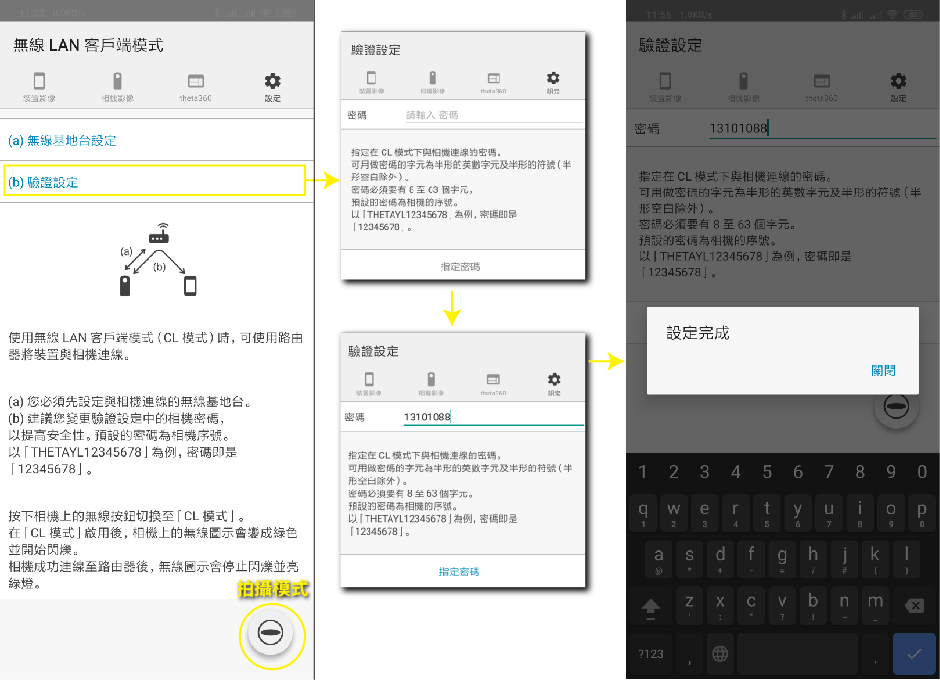 (b)驗證設定:設定THETA Z1密碼