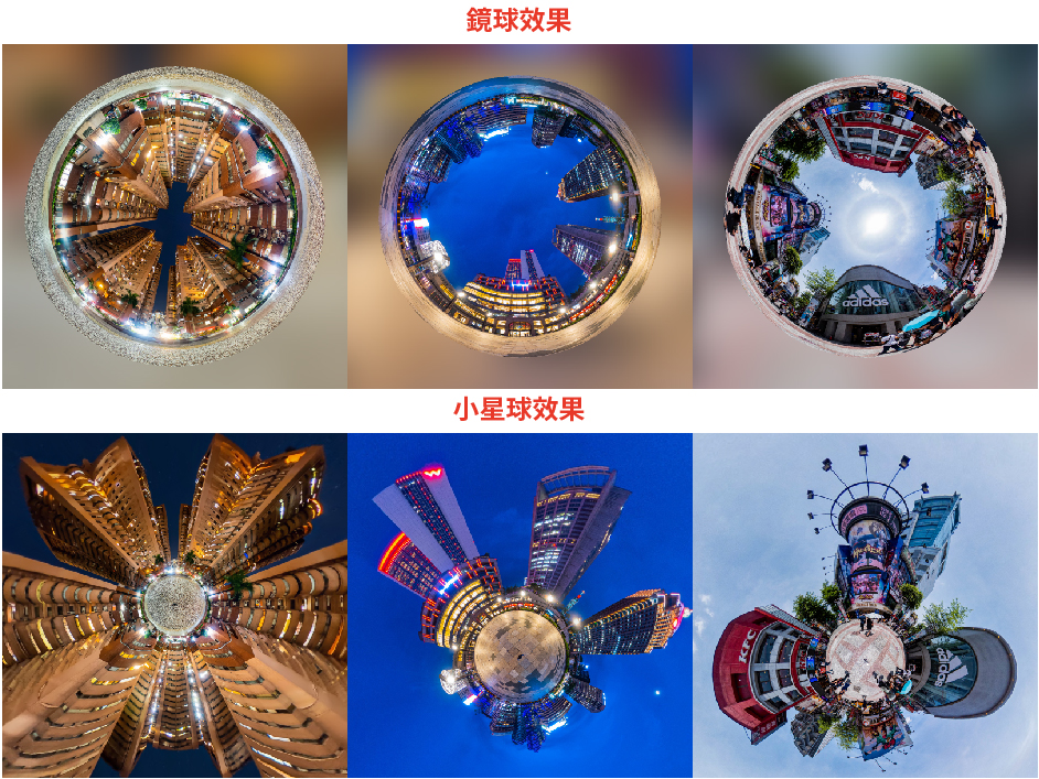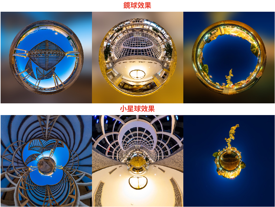 同一個景,上為鏡球效果、下為小星球效果