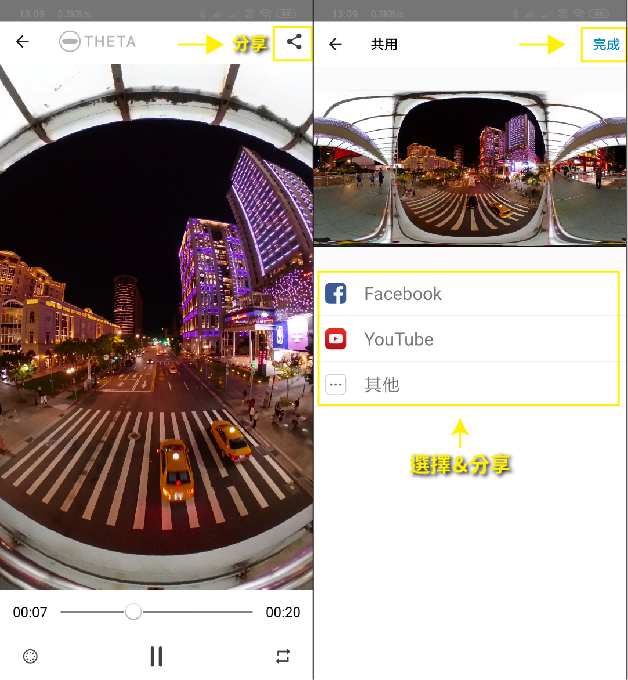 360影片經過THETA+ APP編輯過後不再是360影片