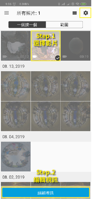 開啟THETA+APP,會出現手機內的360照片跟影片