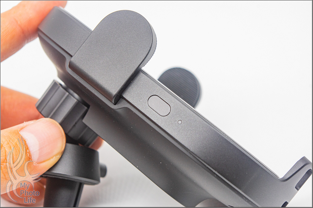 左側有一個按鈕,輕觸會打開夾臂