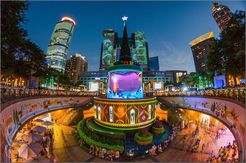 下午五點半後,每半點、整點都會有光雕秀
