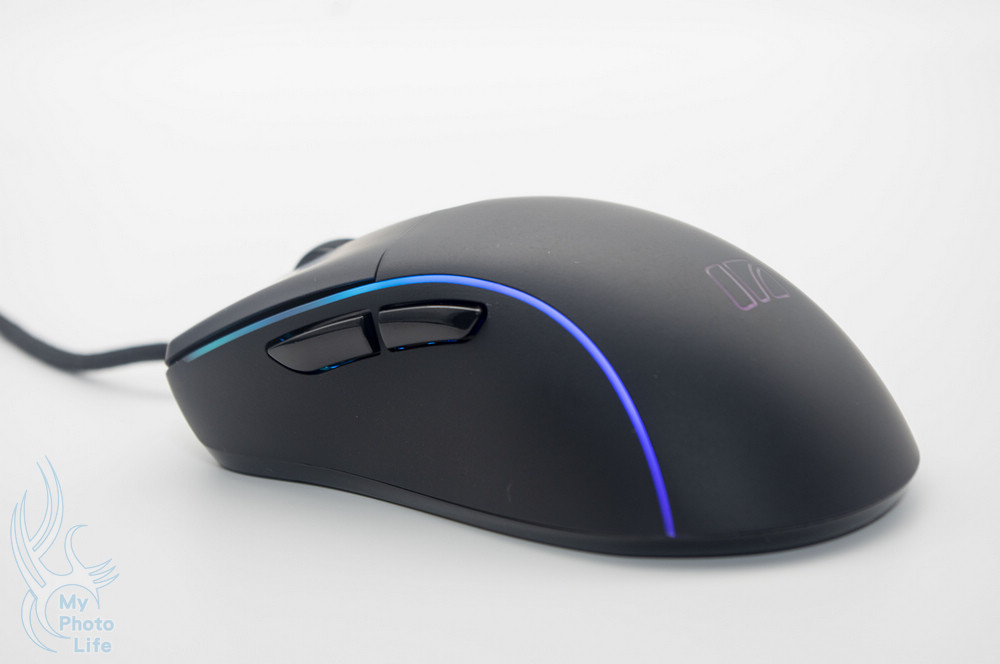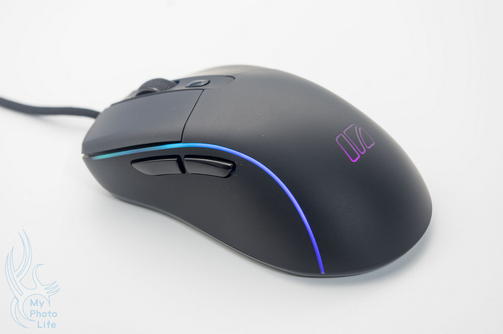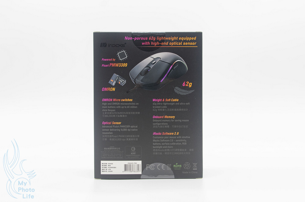 最顯眼的部份就是搭載Pixart PMW3389光學引擎、62g輕量化、高階微動開關,可達6,000萬次點擊壽命