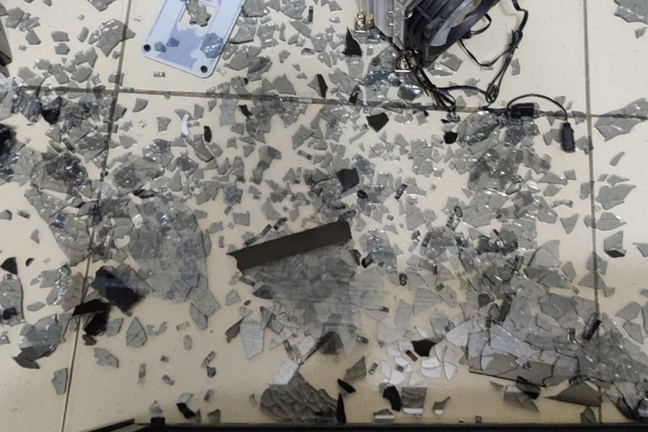 準備拿下側透玻璃安裝CPU散熱器時碎了