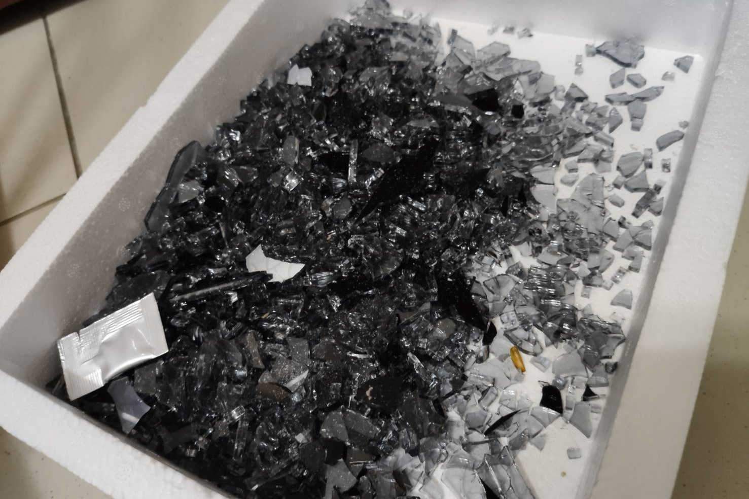 收拾後的碎玻璃