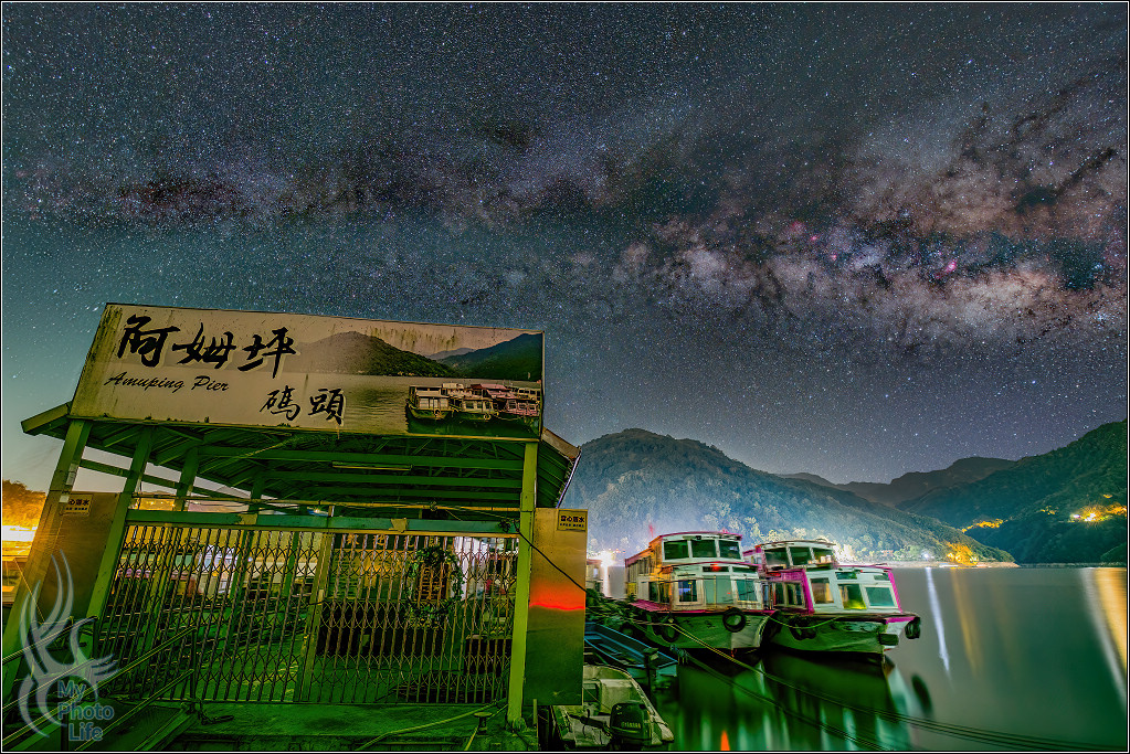 可惜石門水庫水位不是很高,浮動碼頭的位置有點不好構圖