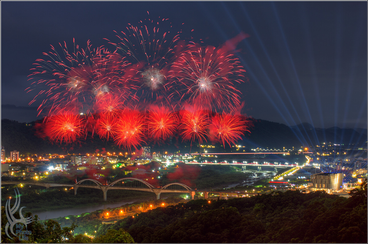 晚上8點56分,煙火正式開始施放
