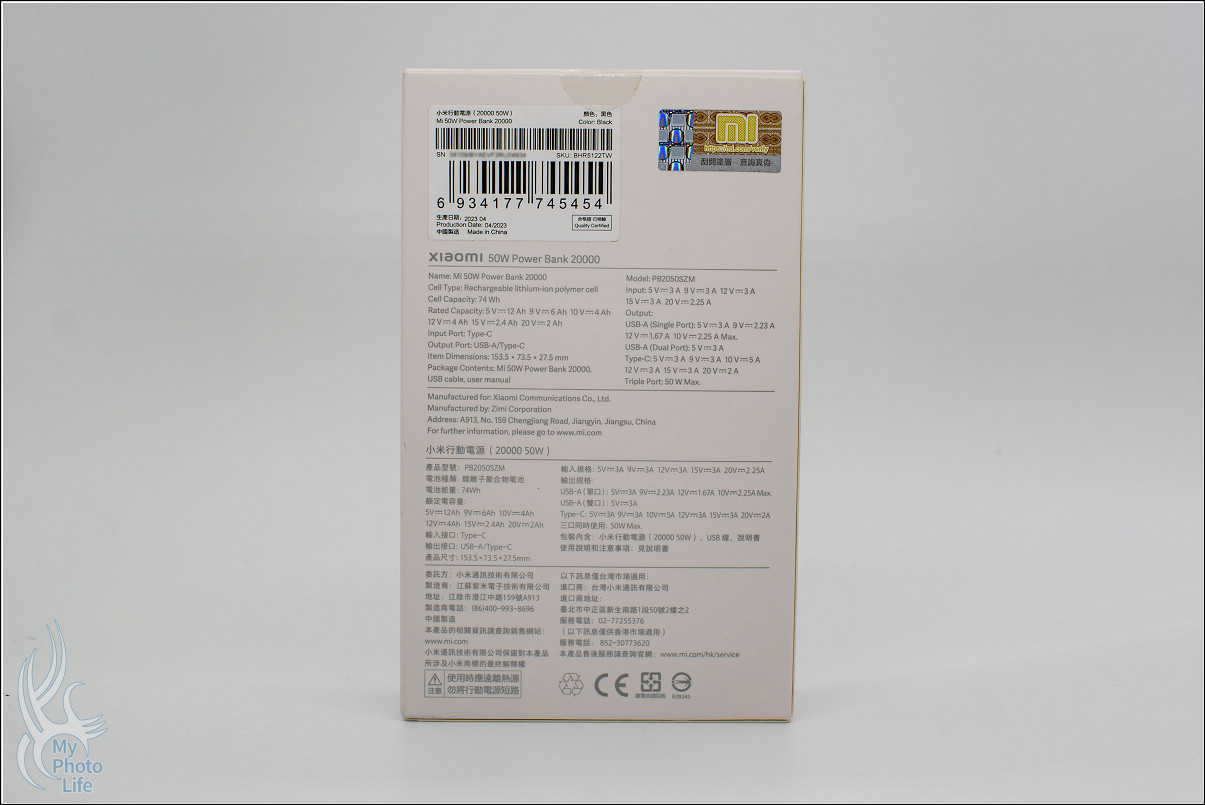 電池功率:74 Wh 3.7V 20000 mAh