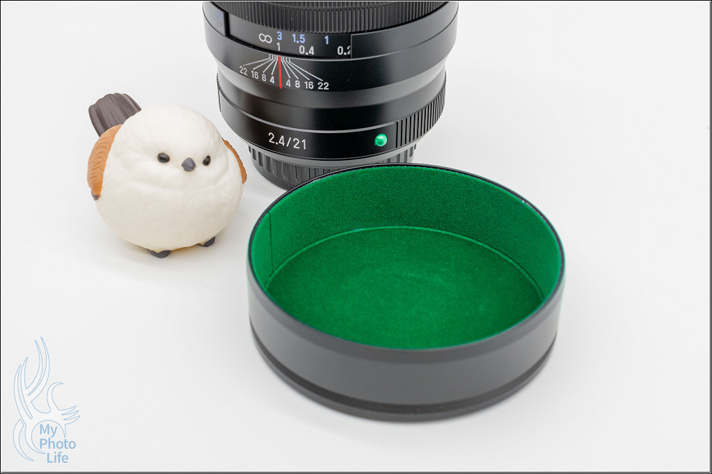 鏡頭蓋內部為綠色絨布材質