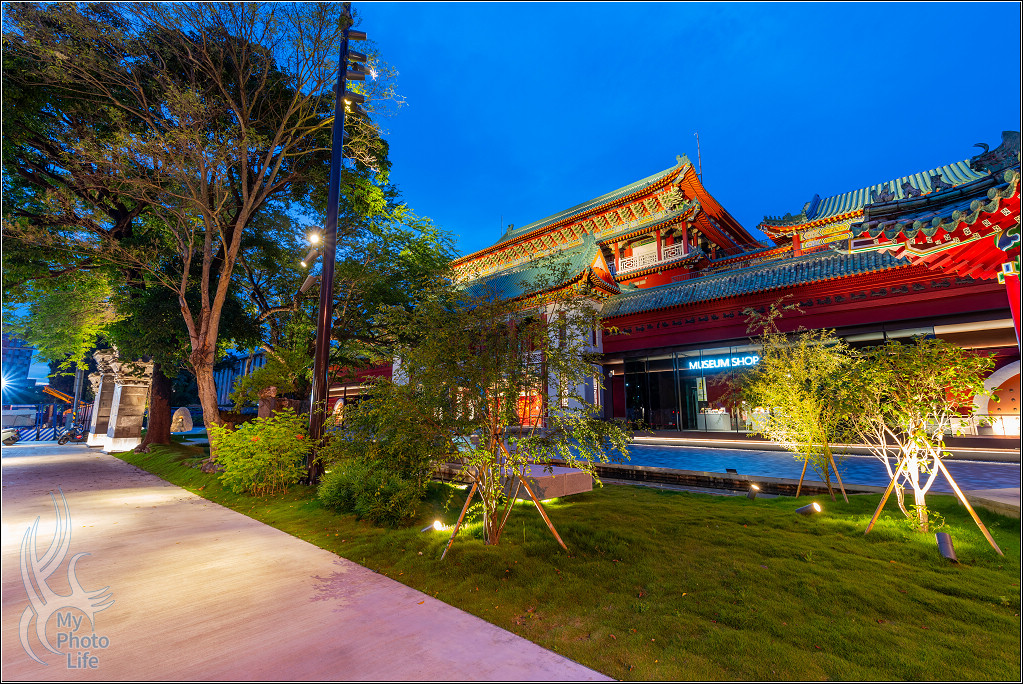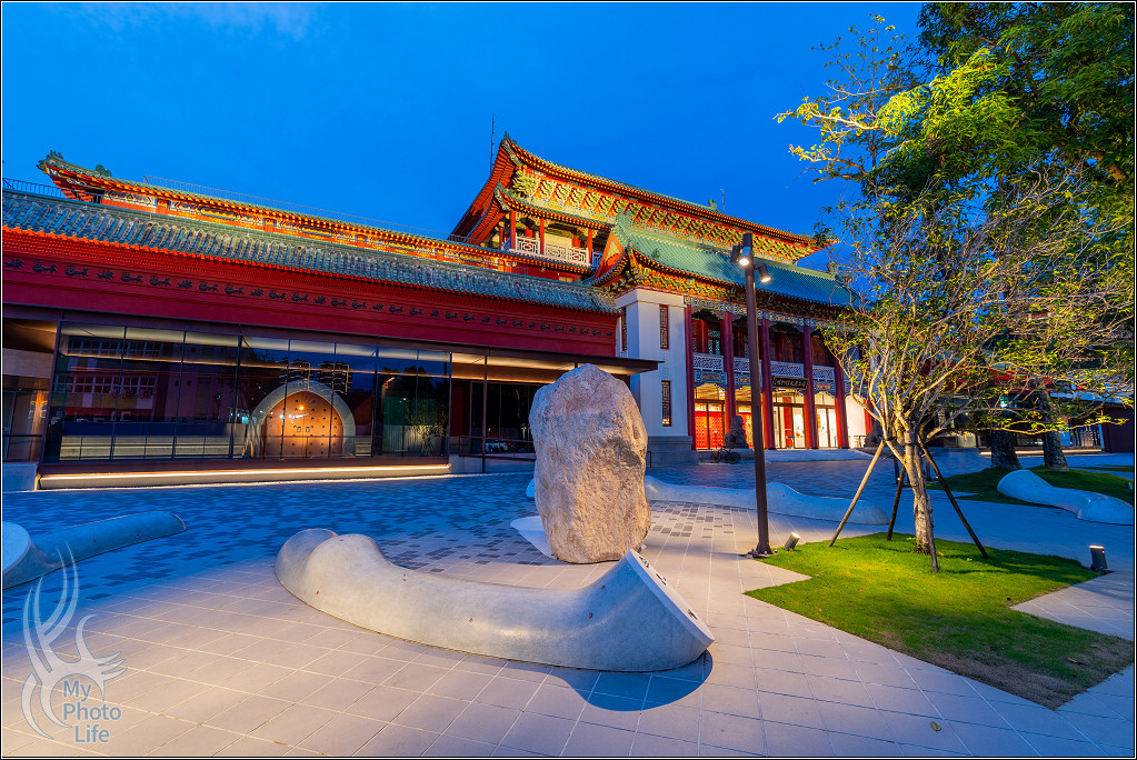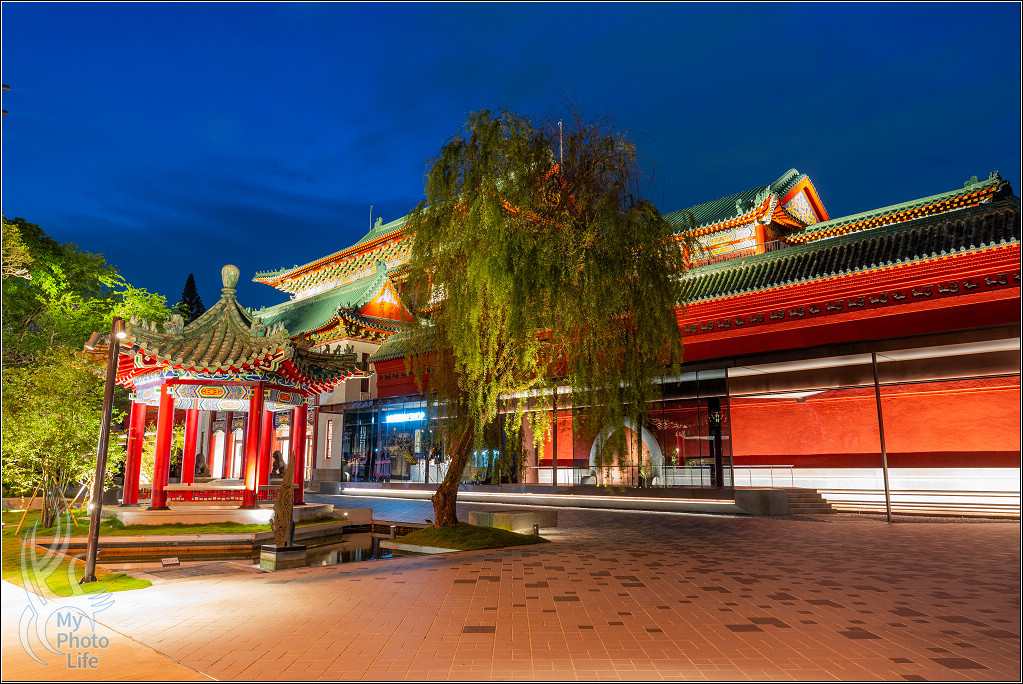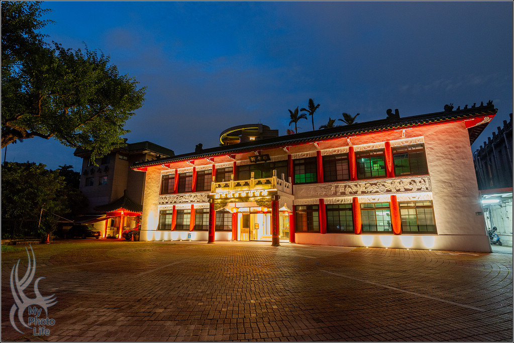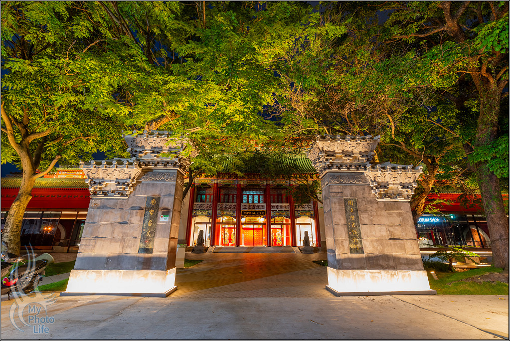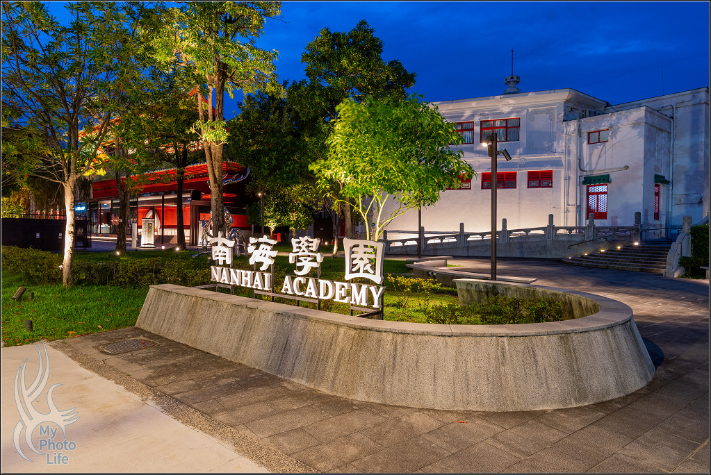 跟隔壁的南海學院相關建築一起在夜晚中呈現不一樣的美