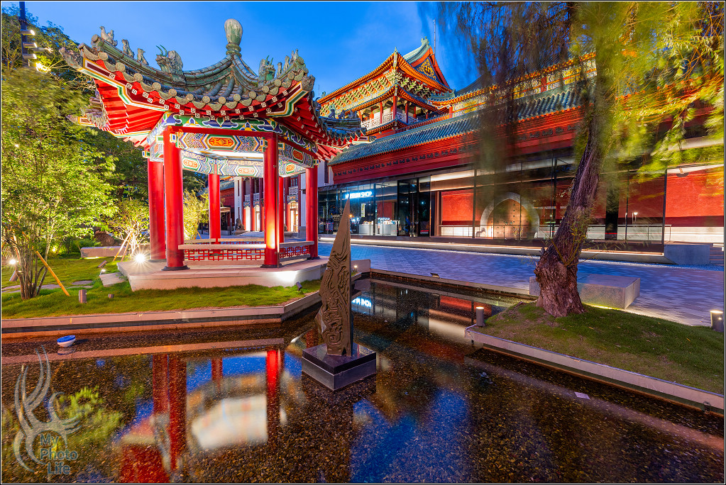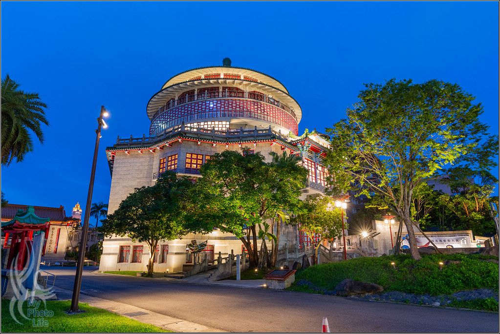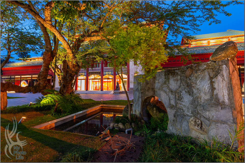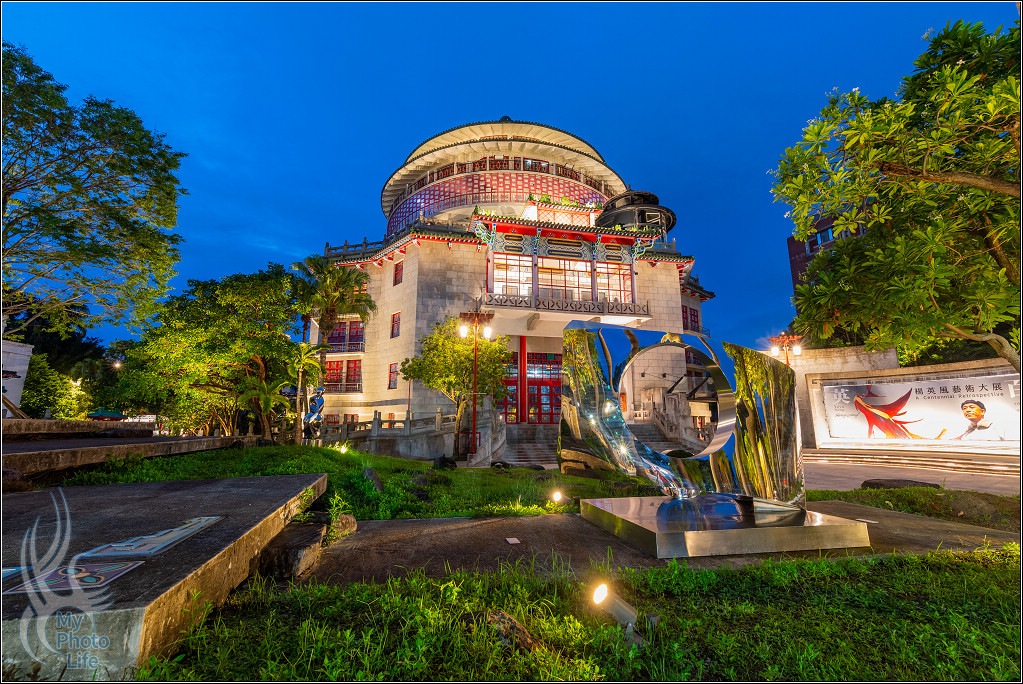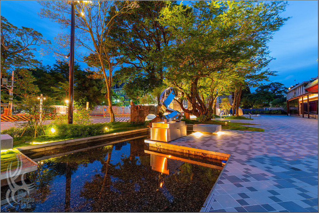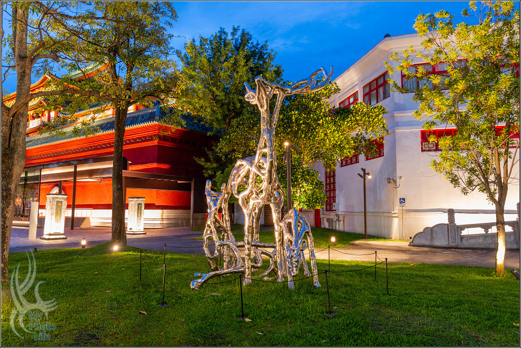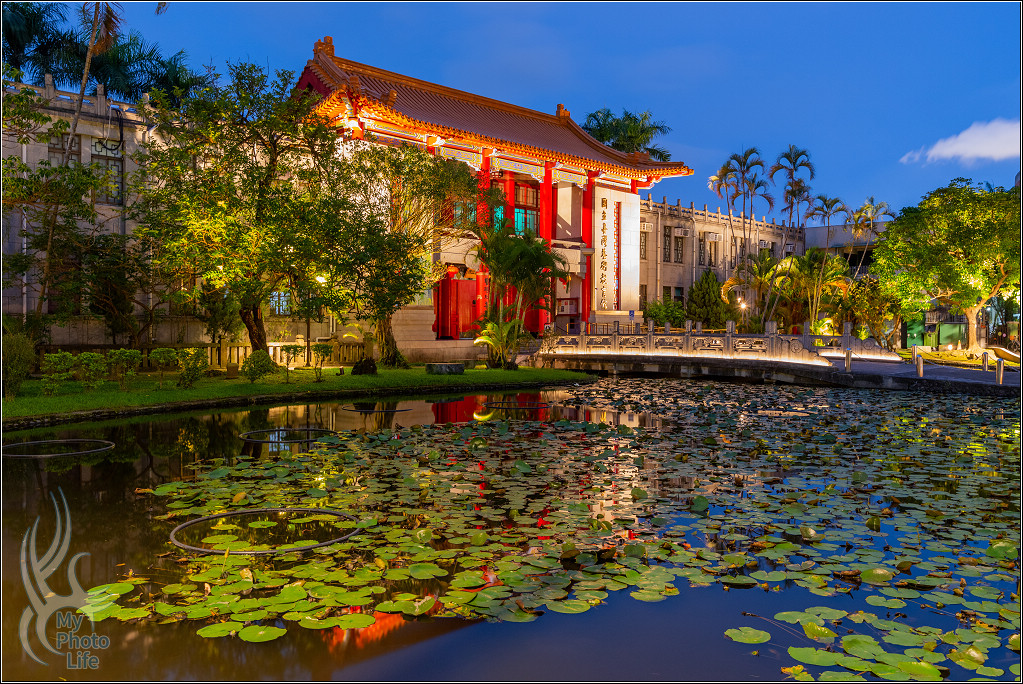 跟隔壁的南海學院相關建築一起在夜晚中呈現不一樣的美