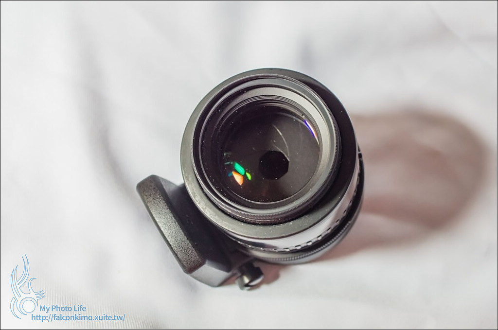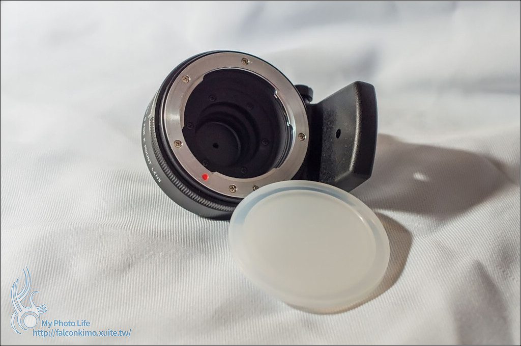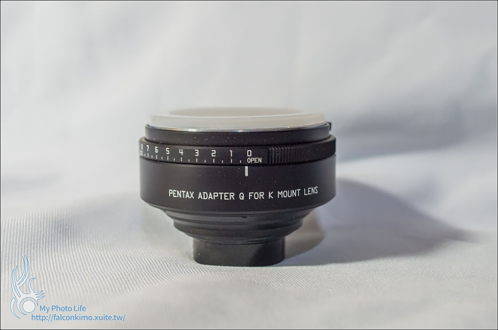 原廠的Q轉K轉接環最主要是可以調整光圈,這是0的部份,可以看到光圈全開(請無視灰塵....)