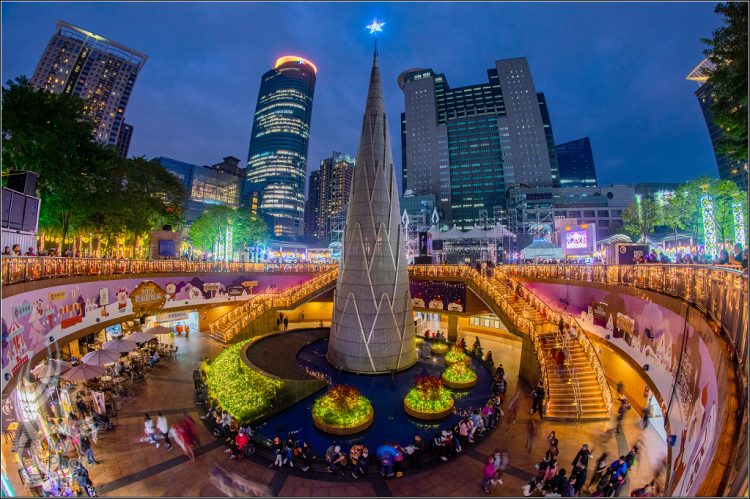 20191116新北市歡樂耶誕城.(上方)光雕投影秀.魚眼拍攝